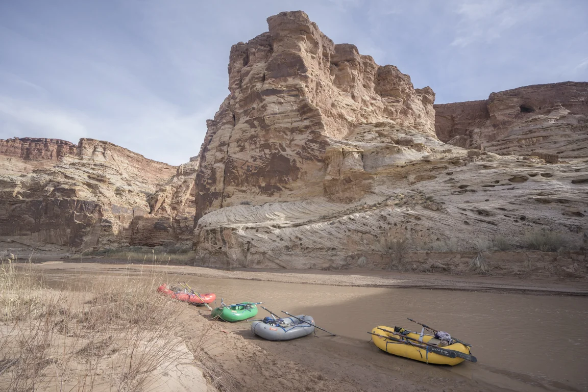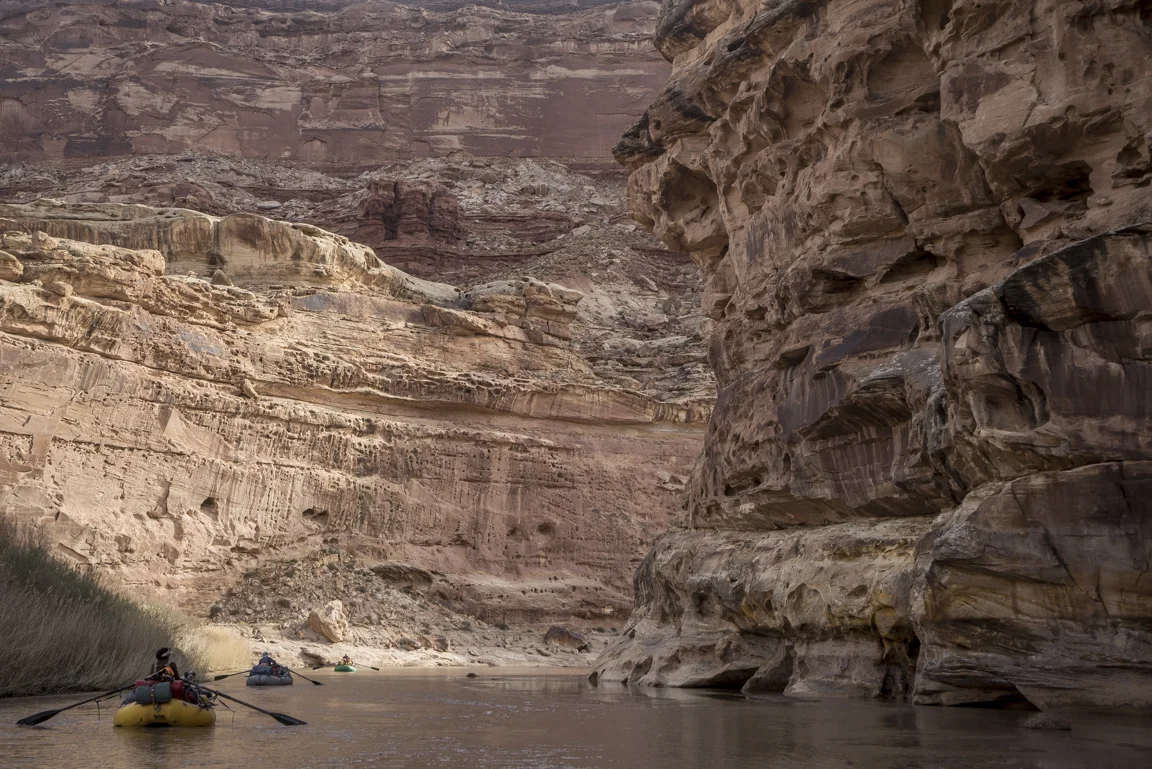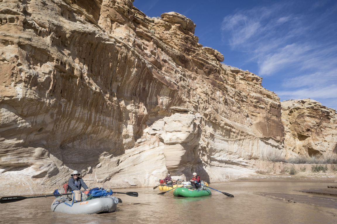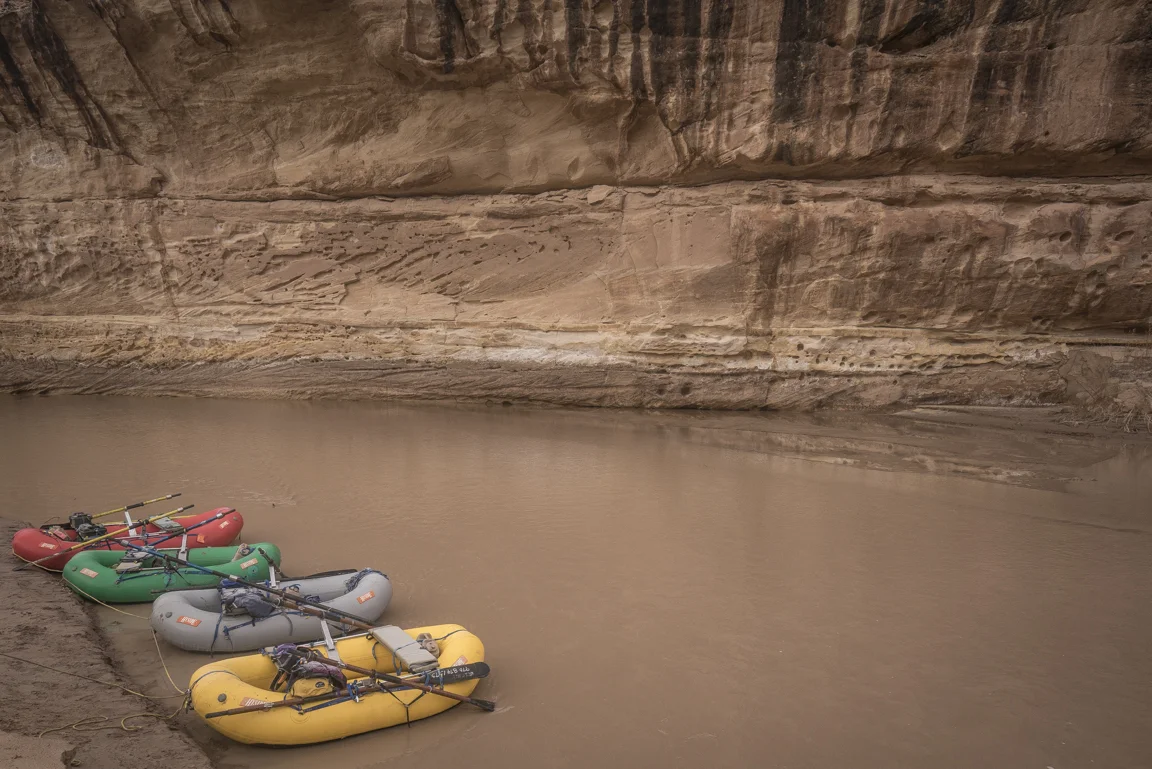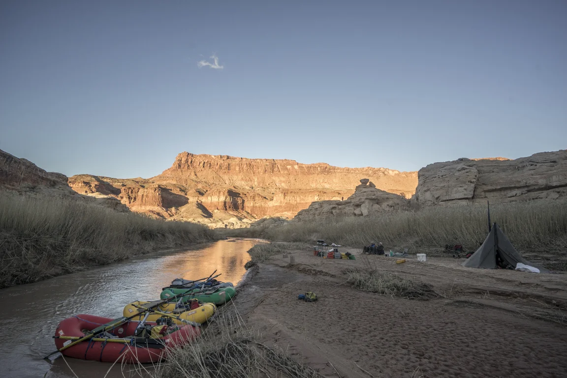 Maybe this lavish way of travel, swelling not just with the trappings of modern convenience but also with glorious expanses of unstructured time and an unhurried pace has enforced the merits of slowing down, to progress at the implicit pace of the river itself. Paulo Coelho said that “beauty is the greatest seducer of men” but in the world I live it seems to be less beauty and more speed and efficiency. Even our leisure has become industrialized. The value then of hot food, heated tents, cumbersome rafts is that they have allowed for me - for us - to float the Dirty Devil in January in a fashion that respects the implied constraints of this time of year; cold weather and short photoperiods. In eschewing a dawn to dusk flailing I’m left with a heightened understanding of enoughism. Just enough water to float, just enough daylight for making a few miles, just enough time on this planet to laugh with friends in utter isolation and just enough time to comprehend the spectacular toil of a river patiently reclaiming itself