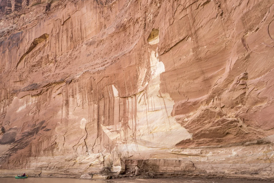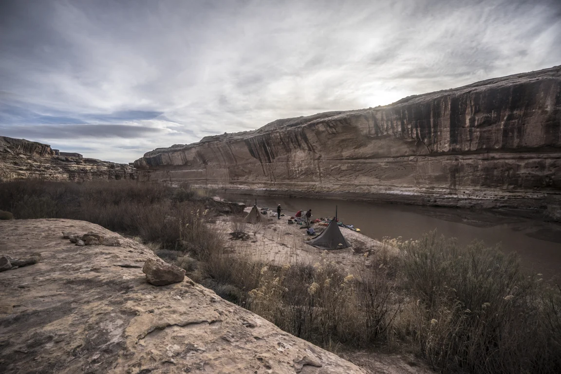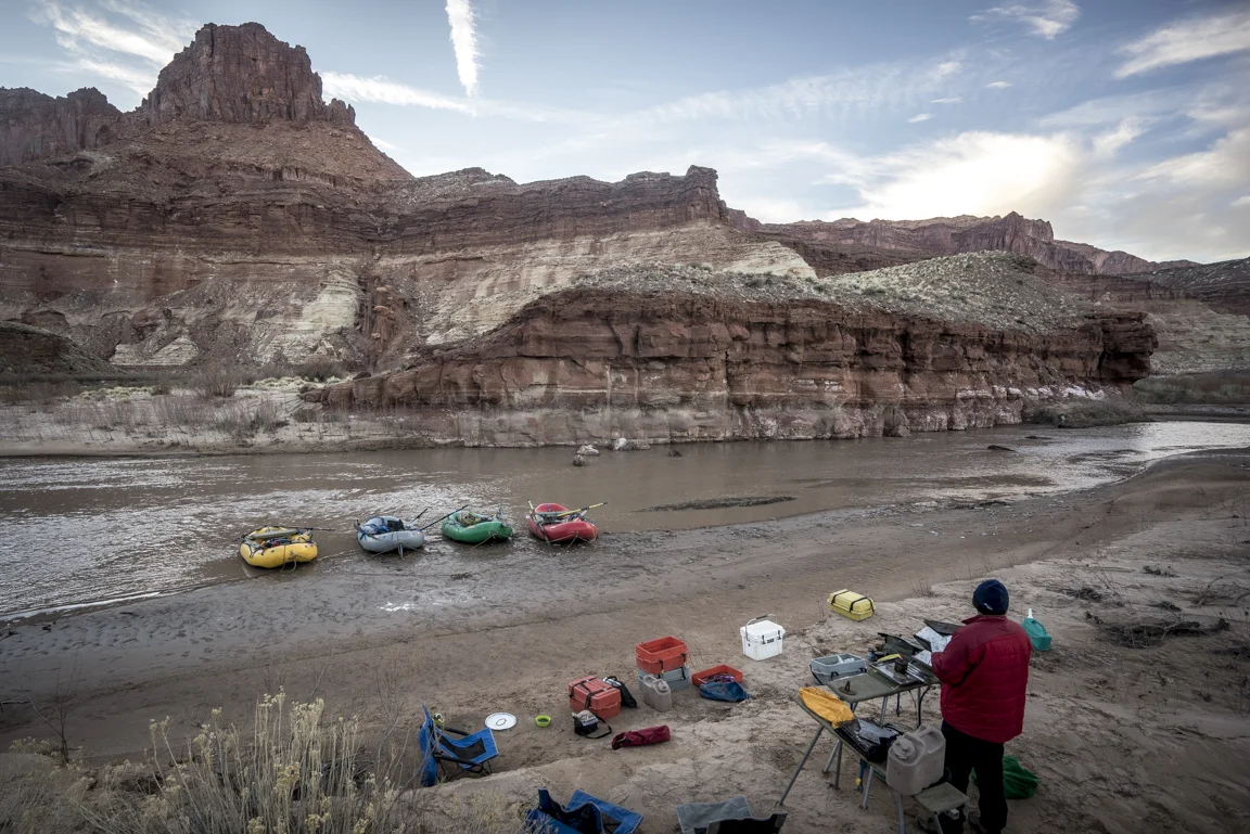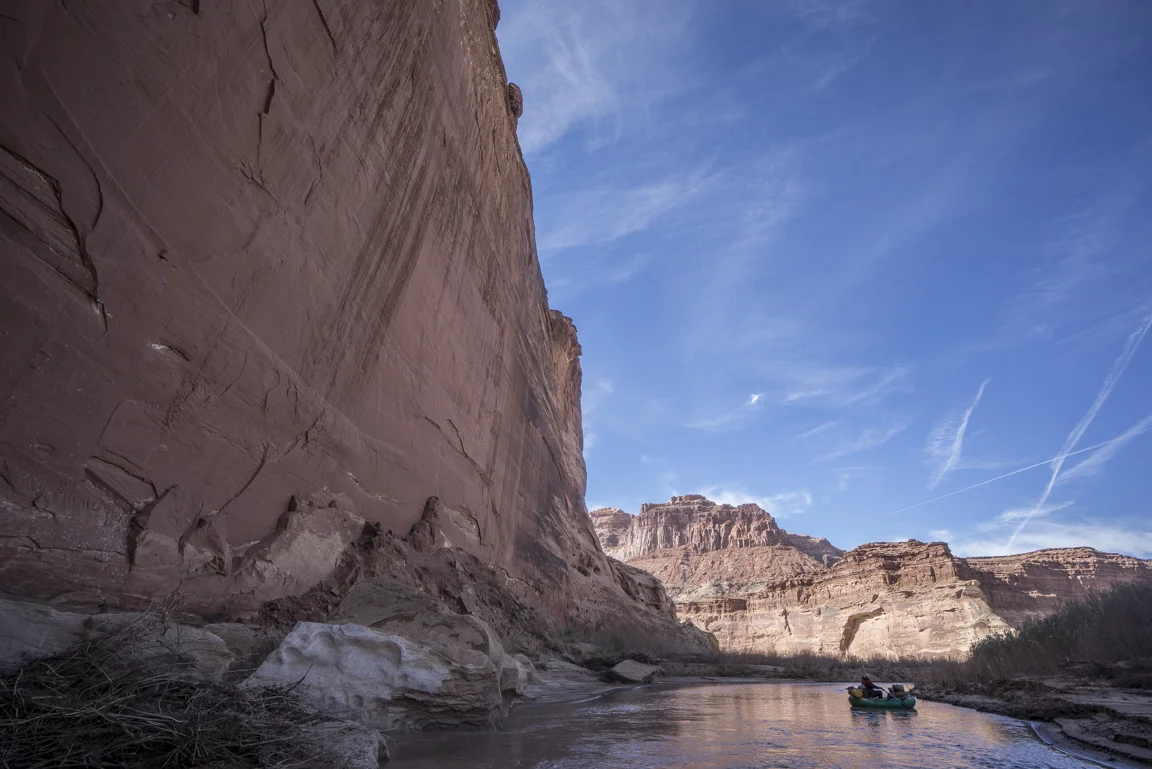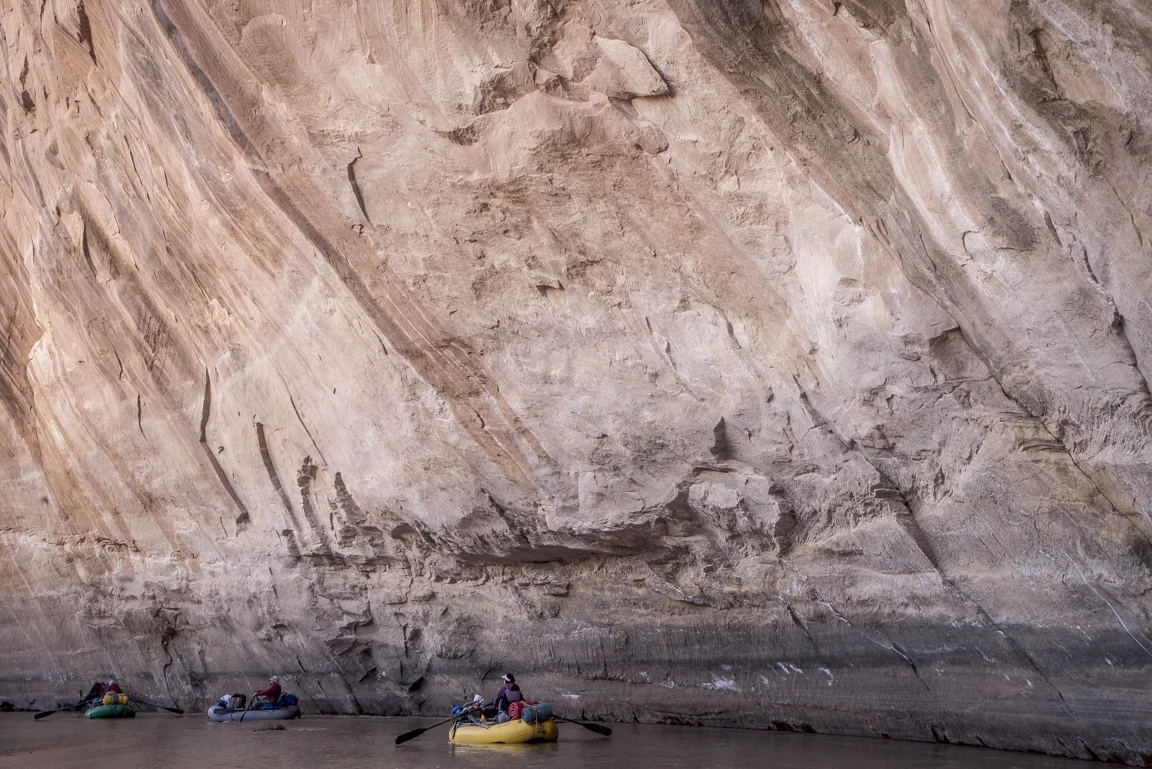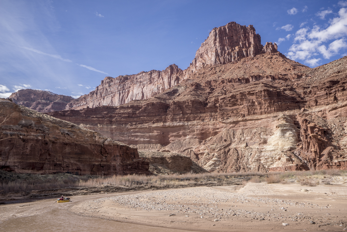 Maybe this lavish way of travel, swelling not just with the trappings of modern convenience but also with glorious expanses of unstructured time and an unhurried pace has enforced the merits of slowing down, to progress at the implicit pace of the river itself. Paulo Coelho said that “beauty is the greatest seducer of men” but in the world I live it seems to be less beauty and more speed and efficiency. Even our leisure has become industrialized. The value then of hot food, heated tents, cumbersome rafts is that they have allowed for me - for us - to float the Dirty Devil in January in a fashion that respects the implied constraints of this time of year; cold weather and short photoperiods. In eschewing a dawn to dusk flailing I’m left with a heightened understanding of enoughism. Just enough water to float, just enough daylight for making a few miles, just enough time on this planet to laugh with friends in utter isolation and just enough time to comprehend the spectacular toil of a river patiently reclaiming itself