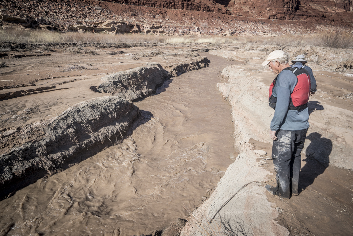My mind drifts to some emotional purgatory; heartbroken by what I see while optimistic in what will pass after I am gone. I think about John McPhee’s “Encounters with the Archdruid” in which he recounts environmentalist David Brower’s confrontations with his ideological adversaries. In one part of the book McPhee writes about Brower floating the Colorado through Grand Canyon with Floyd Dominy, former commissioner of the US Bureau of Reclamation in its Glen Canyon dam building heyday who seems to relish his legacy. In the book Dominy is fiercely protective of his contribution to what he deems progress as he and Brower trade ideological blows in their time together below the dam. I can’t help but wonder what Dominy would think sitting in my boat today, for it seems easy to believe in an easy win when not directly confronted by the deep scars that have been born out above the dam as Lake Powell recedes.