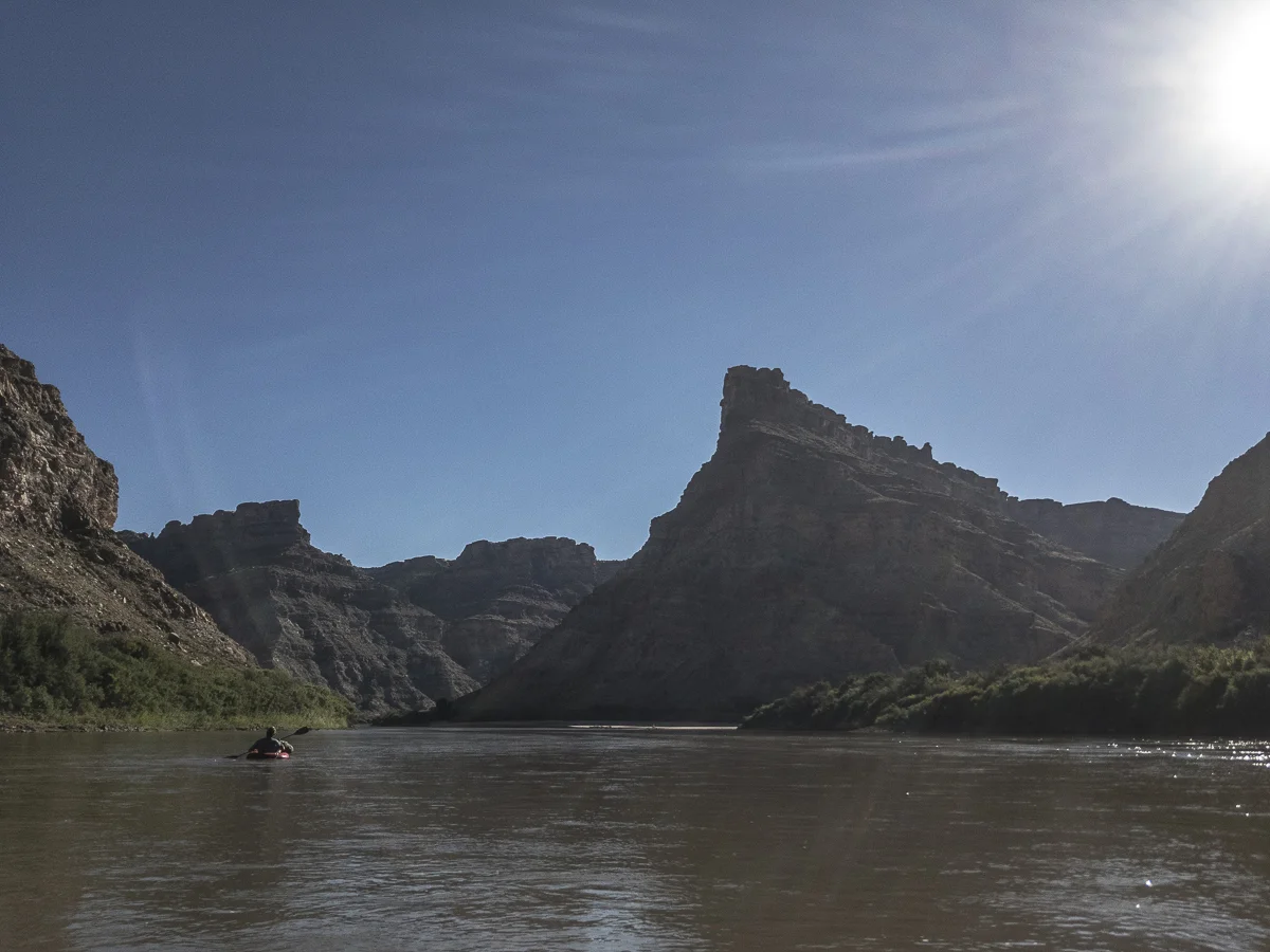 Under the lone box elder providing a sliver of reprieve from the heat we snack while engaged in conversation in defense of Kelsey and pack-able boats with a group of Park Service river rangers headed upstream.