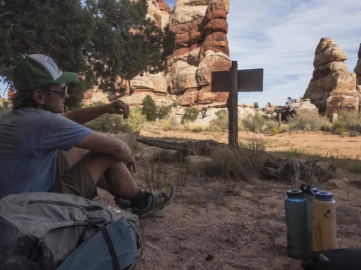 Just outside the Dollhouse we have a meeting of the minds. We’re exceptionally low on water and realize we will not make it to water tonight. Its fall and the desert is dry. Its worrisome. We debate taking an axe to a rather large detour we had planned for this trip. But my companion, ever the desert rat, had spoke to people in the know about water in the Maze. He was turned on to a less known collecting pool in our current vicinity and offered to “go take a look.” A while later (while I nap in the shade) he returns with 3+ liters of cold filtered. Apparently there was water available - a lot of it in fact. A good piece of knowledge to file away.