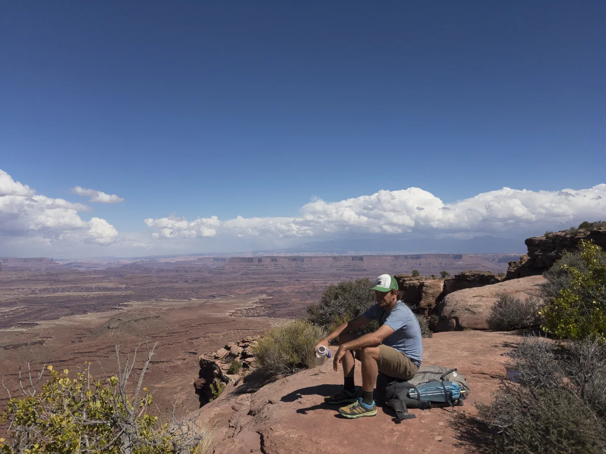 After a few miles walking the White Rim Road we pause briefly, hot as hell as the sun reintroduces itself. We’re close now, the truck all of 3 miles away.